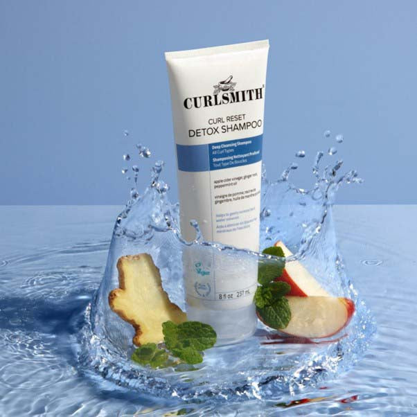 Curlsmith’s newly refined Curl Reset Detox Shampoo improves on our original formula and is one of the best clarifying shampoos for curly hair on the market. Formulated with naturally derived ingredients like apple cider vinegar, ginger root, peppermint oil and help remove build-up. The Curl Reset Detox Shampoo combines science with innovation, leaving curly hair cleaner and healthier looking than ever.