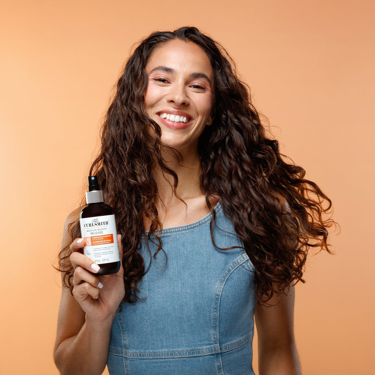 A surefire way to infuse instant hydration into your hair is by applying Curlsmith’s NEW Moisture Memory Release to your curls.